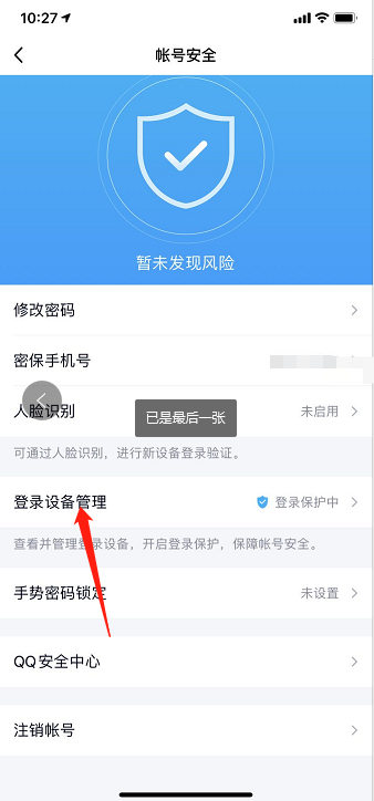 4、然后即可在账号安全界面,看到登录设备管理选项。