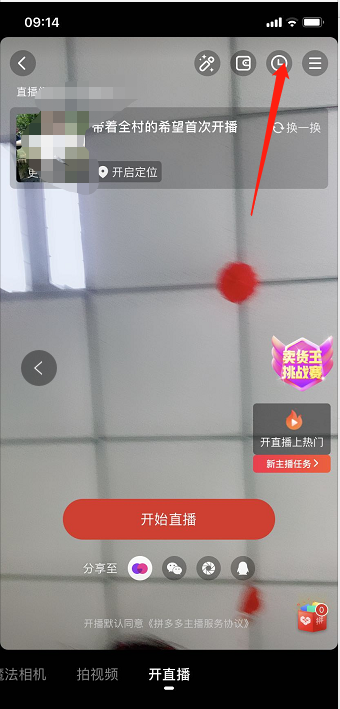 3、进入后点击右上方的“计时器”按钮,之后就能查看自己的直播记录了。