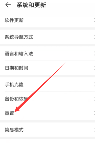 3、点击“重置”选项。