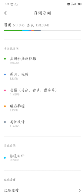2、点击储存空间。
