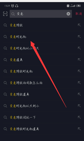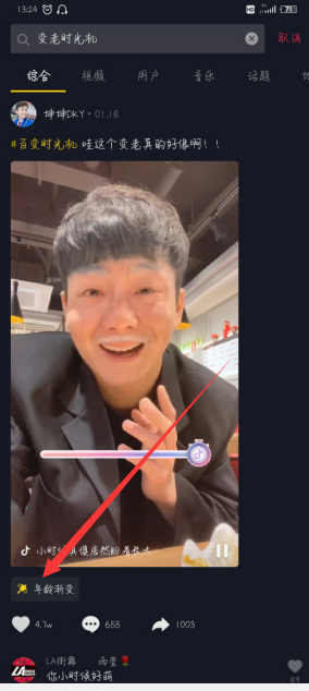 2、在搜索框里输入“变老”,选择“时光机特效”。