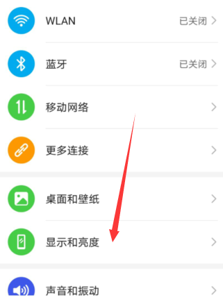 1、首先打开手机桌面的设置选项里的显示与亮度。