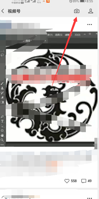 2、接着点击右上角【照相机】图标,这里可以拍摄一段视频或从相册选择视频和照片。