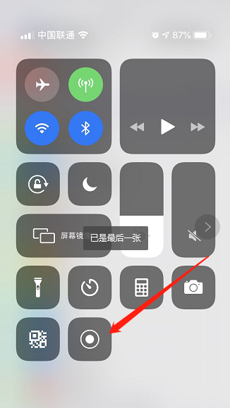 3、最后将手机屏幕向下滑动,调出【控制中心】快捷菜单,即可看到【屏幕录制】按钮,直接点击录制即可。