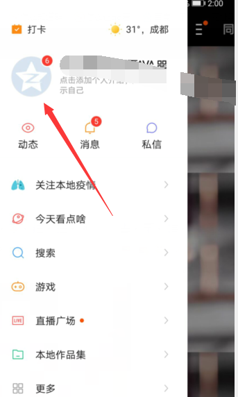 2、在弹出菜单中点击头像。