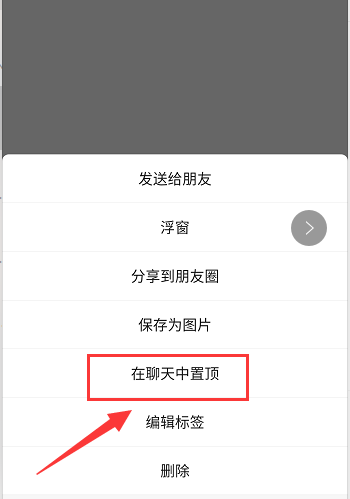 6、回到微信的聊天界面,就可以看到刚刚设置置顶的文字在顶部已经显示。