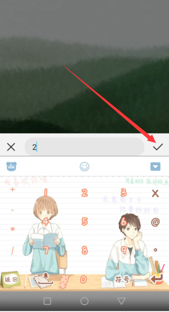 4、输入文字,点击输入框右侧的勾即可对照片编辑文字。