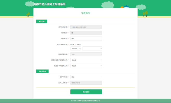 具体信息采集项在选择了幼儿户籍所在区县后确定。