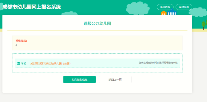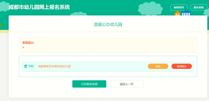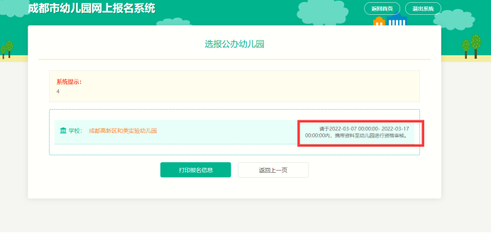 第五步:选报幼儿园后可查看报名信息。