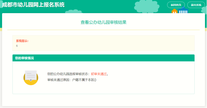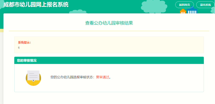 在公办园审核时间结束后,若审核状态为“未审核”,查看报名页面,显示提示如图: