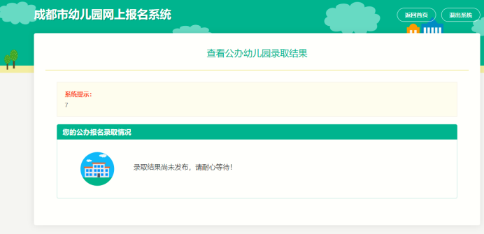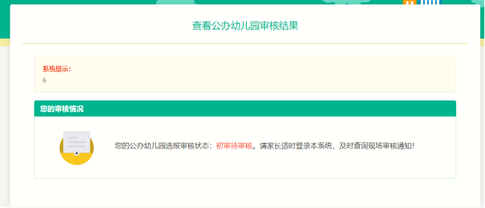 在报名时间结束后,若初审状态是未审核,且未到公办园审核时间结束(幼儿园审核结束时间)前,查看报名页面,显示提示如图: