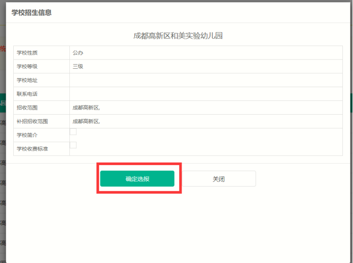 第四步:查看幼儿园相关信息,点击“确定选报”,二次确认后,选报成功