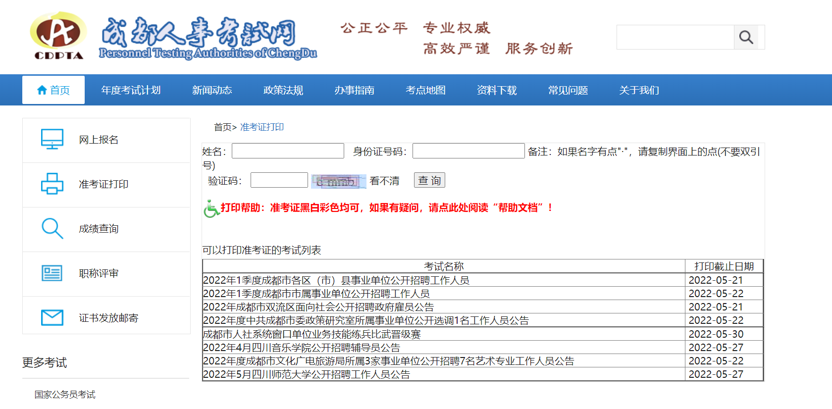 准考证打印入口:成都市人事考试网(https://cdpta.cdhrss.chengdu.gov.cn/netpage/card.do)