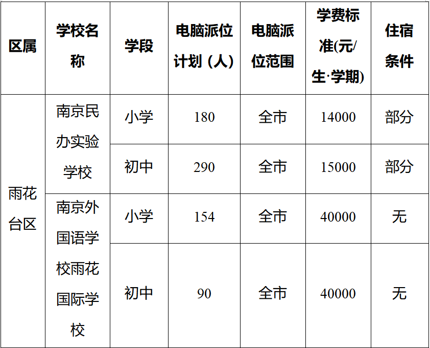 2、6月25日,同步进行民办学校、热点公办学校和南京外国语学校电脑随机派位,并公布结果。