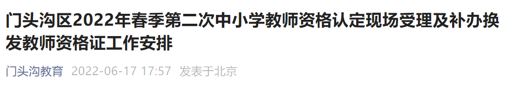 门头沟区2022年春季第二次中小学教师资格认定现场受理及补办换发教师资格证工作安排