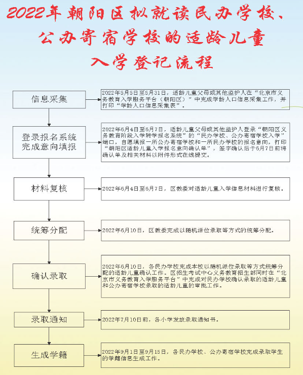 2022年朝阳区拟就读民办学校、公办寄宿学校的适龄儿童入学须知