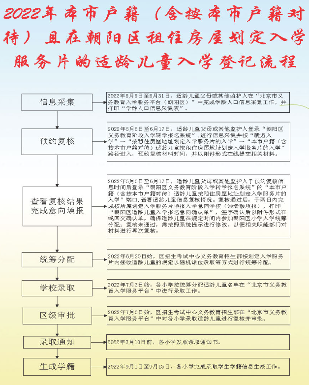 2022年本市户籍(含按本市户籍对待)且在朝阳区租住房屋划定入学服务片的适龄儿童入学须知