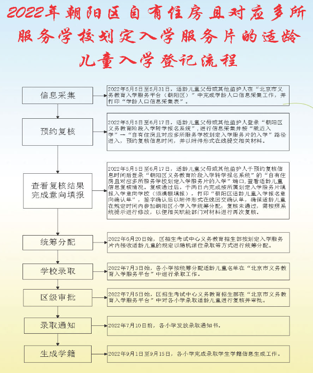 2022年朝阳区自有住房且对应多所服务学校划定入学服务片的适龄儿童入学须知