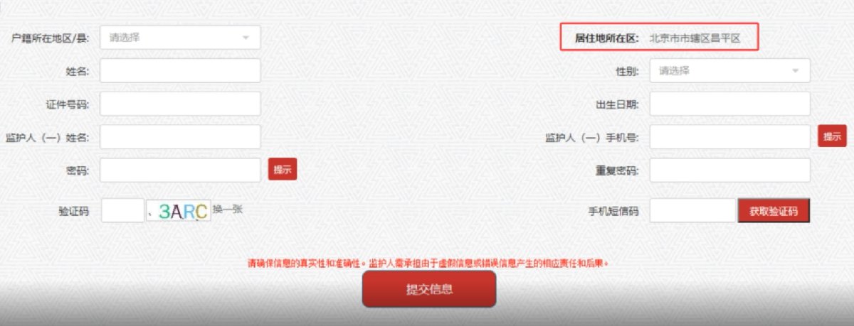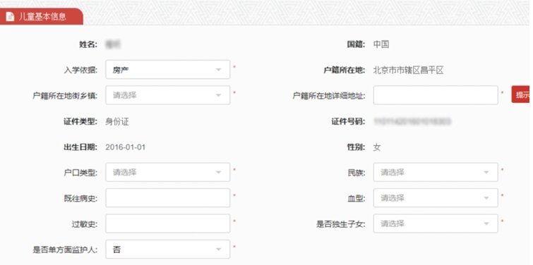第五步,家长根据适龄儿童实际情况填写注册信息。