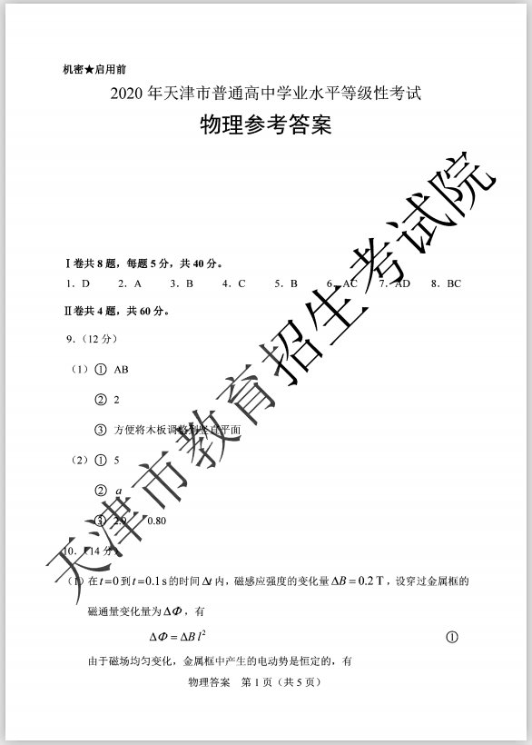 注:2021年天津高考试题和答案尚未公布,本文内容参考2020年信息,小编会在最新消息公布后及时更新~