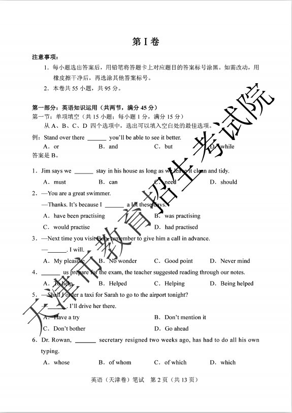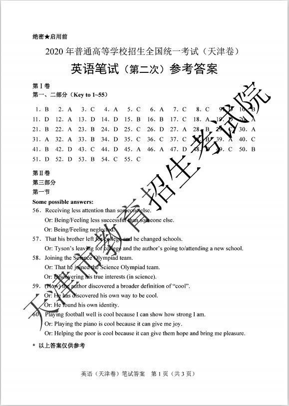 注:2021年天津高考试题和答案尚未公布,本文内容参考2020年信息,小编会在最新消息公布后及时更新~