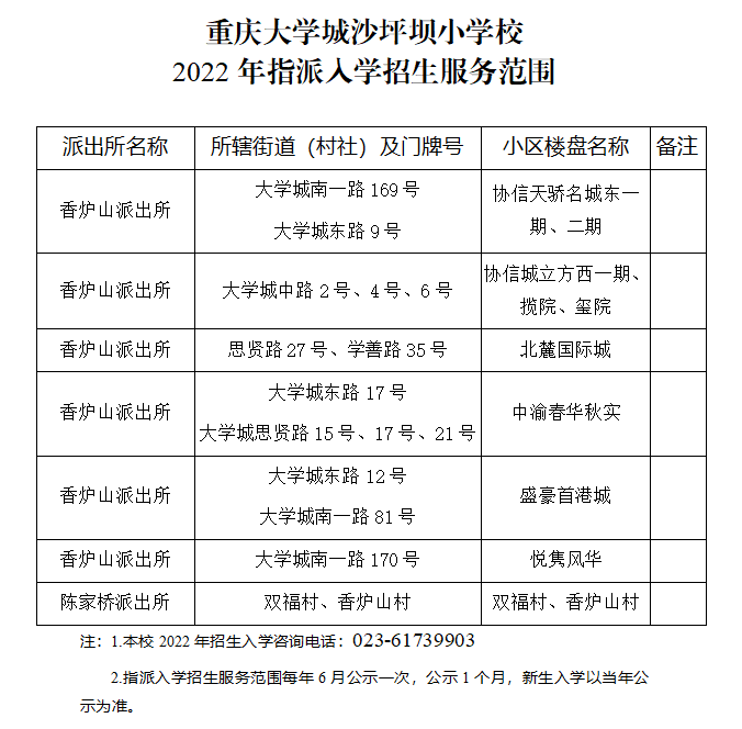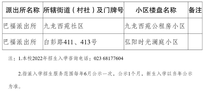2. 指派入学招生服务范围每年6月公示一次,公示1个月,新生入学以当年公示为准;