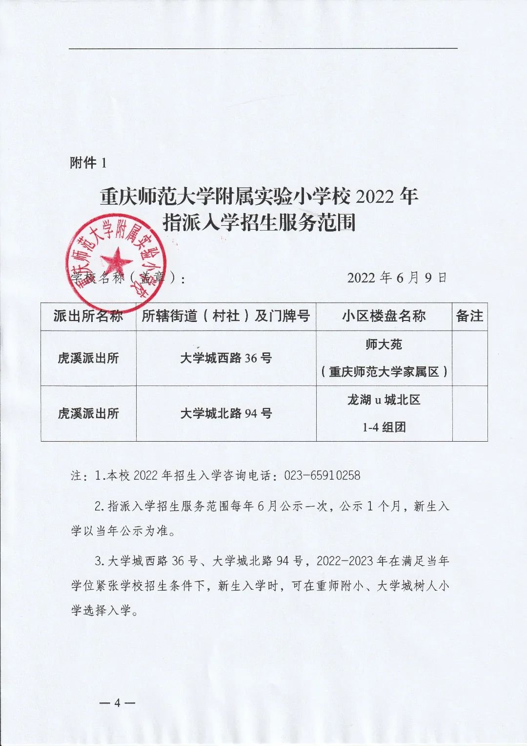 ③ 重庆市沙坪坝区大学城北路94号、大学城西路36号,可在重庆大学城树人小学校、重庆师范大学附属实验小学校选择入学。