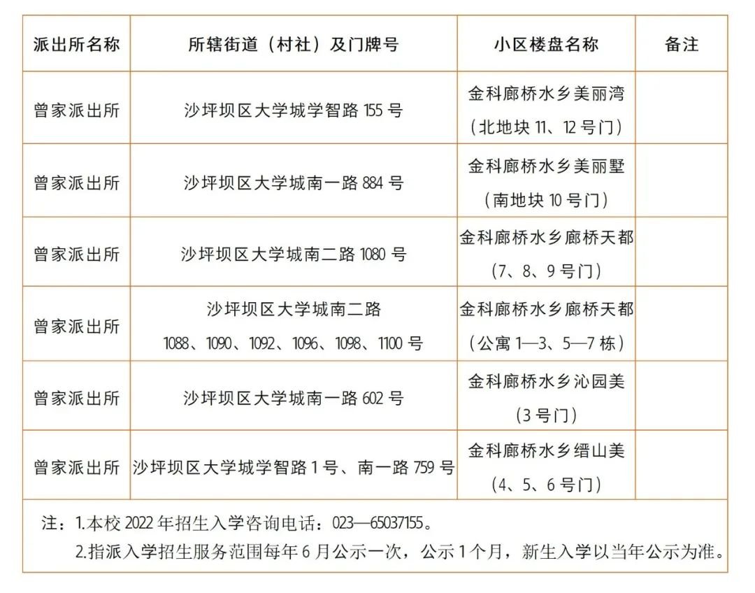② 重庆市沙坪坝区厚德路22号、24号,可在重庆大学城树人小学校、重庆大学城人民小学校选择入学;