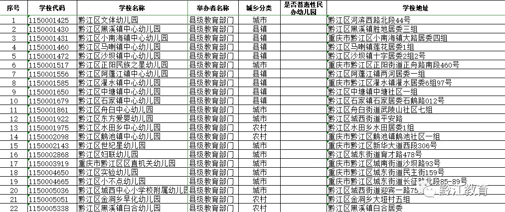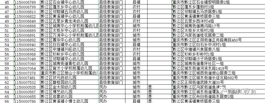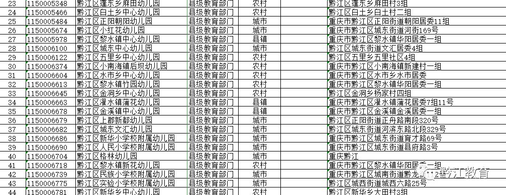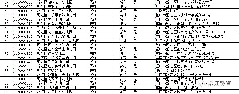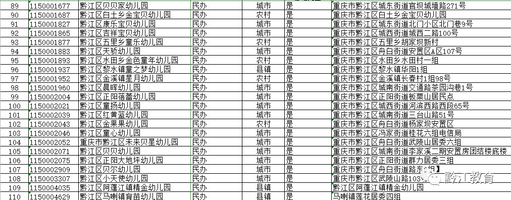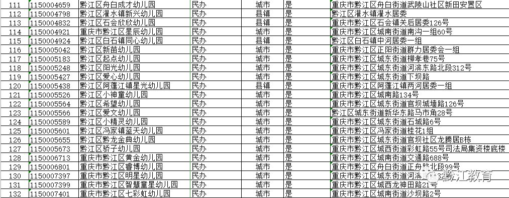 2020年黔江区公办园和普惠性民办园名单公示
