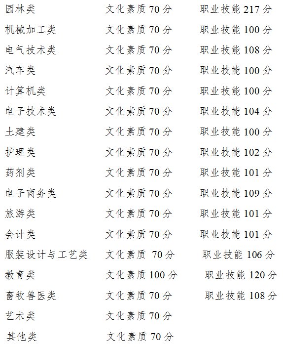 高职对口类中其他类考生职业技能测试成绩合格分数线,由其参加职业技能测试的高校划定。