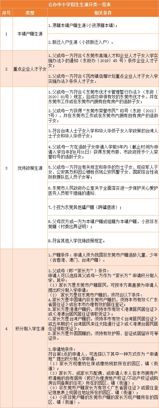 如果非本地户籍想进入东莞公办中学,家长们可以选择重点企业人才子女、优待政策、积分入学其中一个方式。详情可见下表: