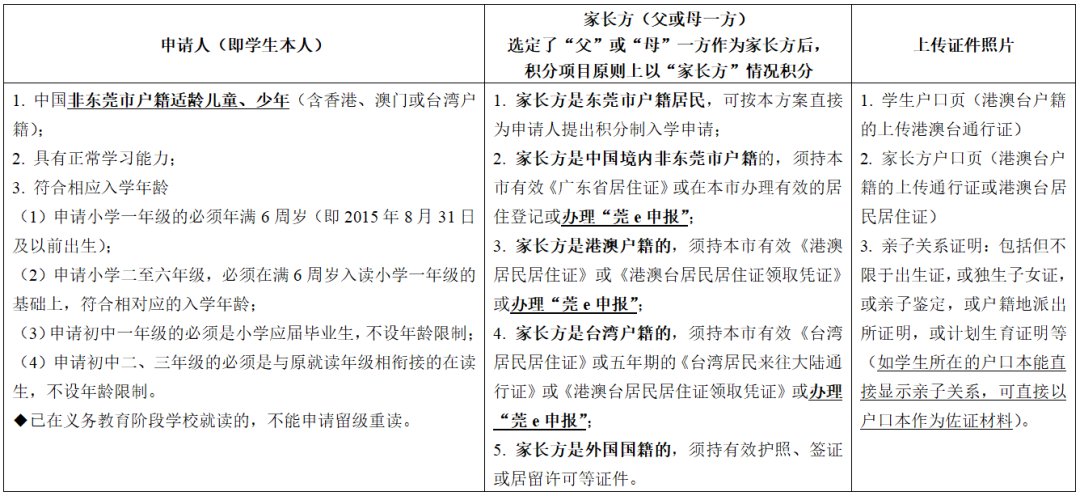 2.具体积分项目、评分标准以及具体操作见《东莞市义务教育阶段非户籍适龄儿童少年积分制入学积分材料一览表》。