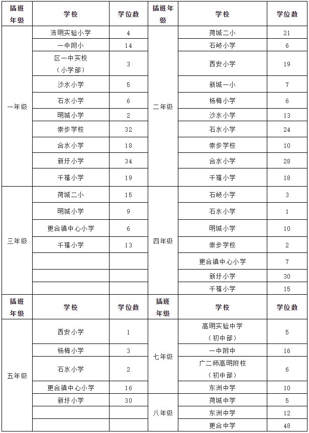 各教育服务部根据学校学位数依次录取插班生,额满为止。