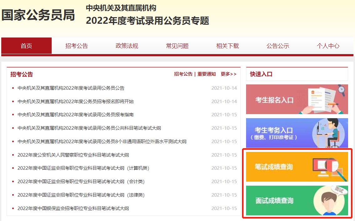 2022年国家公务员考试成绩查询时间: