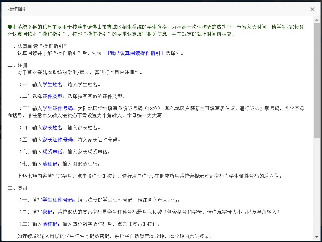 认真阅读《操作指引》,点选文末“我已经认真阅读《操作指引》、确认并关闭”。