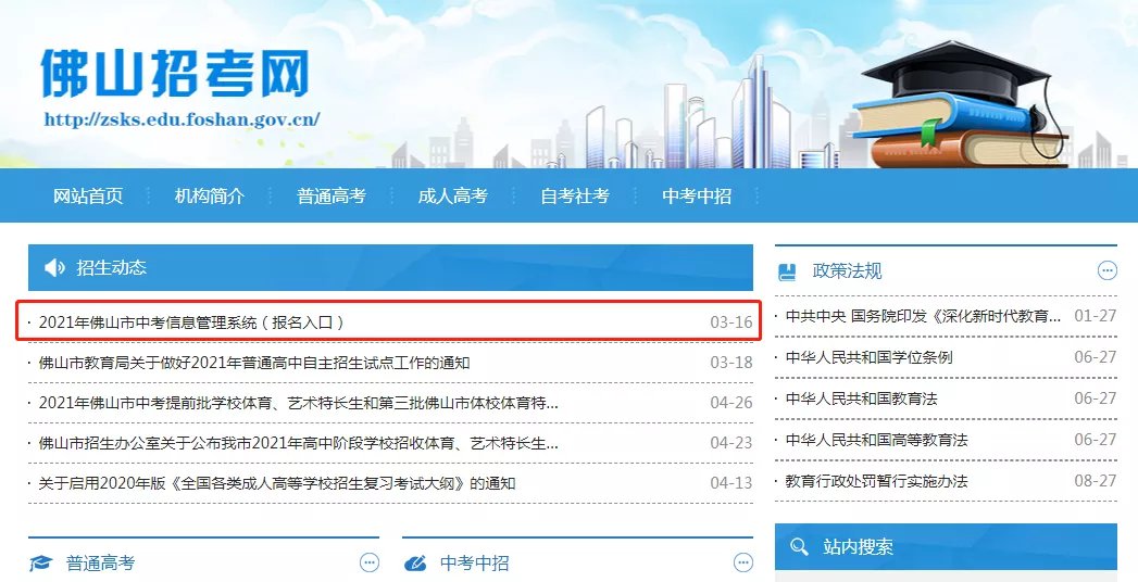 2021年佛山市中考报名及成绩网上查询系统: