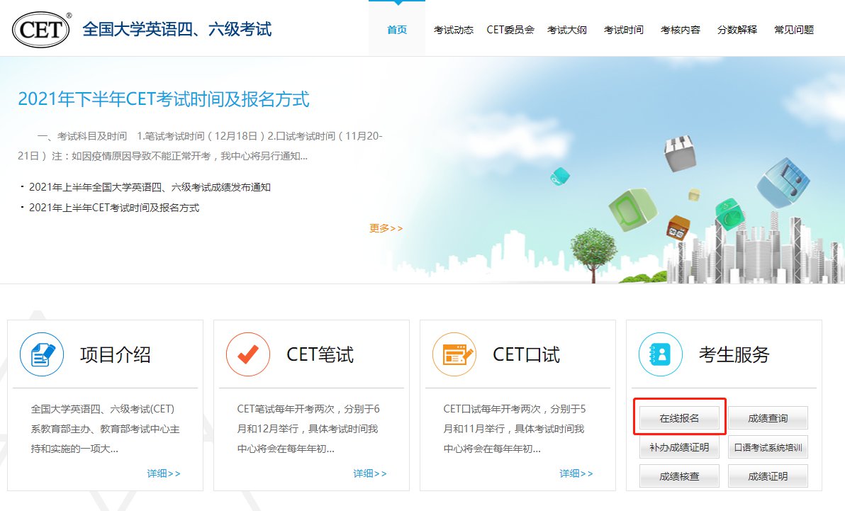 大学英语四六级考试官方报名入口:中国教育考试网