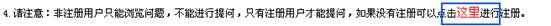 如果您想在咨询中进行提问,请进行注册。可直接点击左侧橘色标注的注册,系统会自动为您跳转到注册界面,并帮助您完成注册过程。您亦可以直接点击匿名访问进入问题列表界面,点击页面右上方的注册按钮进行界面跳转。