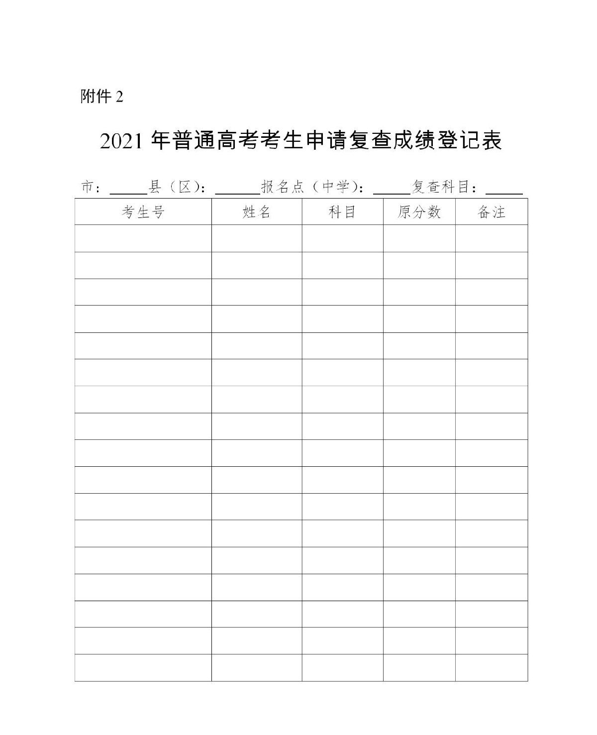 广东省《2021年普通高考考生申请复查成绩登记表》模板↓↓
