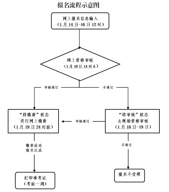 所有经网上及现场资格审核通过的报考人员,都需要在1月19日24时前登陆报名网站,按照网站指引完成网上缴费,逾期不缴费的,视为自动放弃报名。网上缴费后,请报考人员及时登录报名网站核查报名状态,出现“报名成功(已缴费)”时,表示缴费已成功,报名已完成。