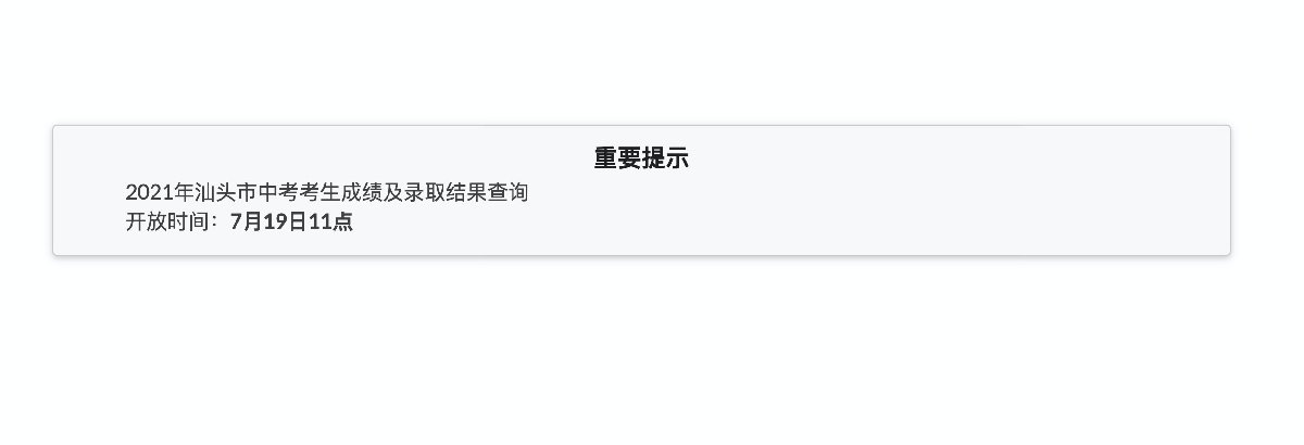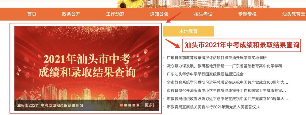 除了网站查询大家也可以尝试微信公众号查询,根据汕头市教育局发布的《关于汕头市2021年中考成绩和录取结果公布时间的公告》,考生可登录汕头市政府门户网站汕头市教育局频道、汕头市教育局微信公众号和汕头橄榄台、汕头移动微信公众号查询本人考试成绩及录取结果。