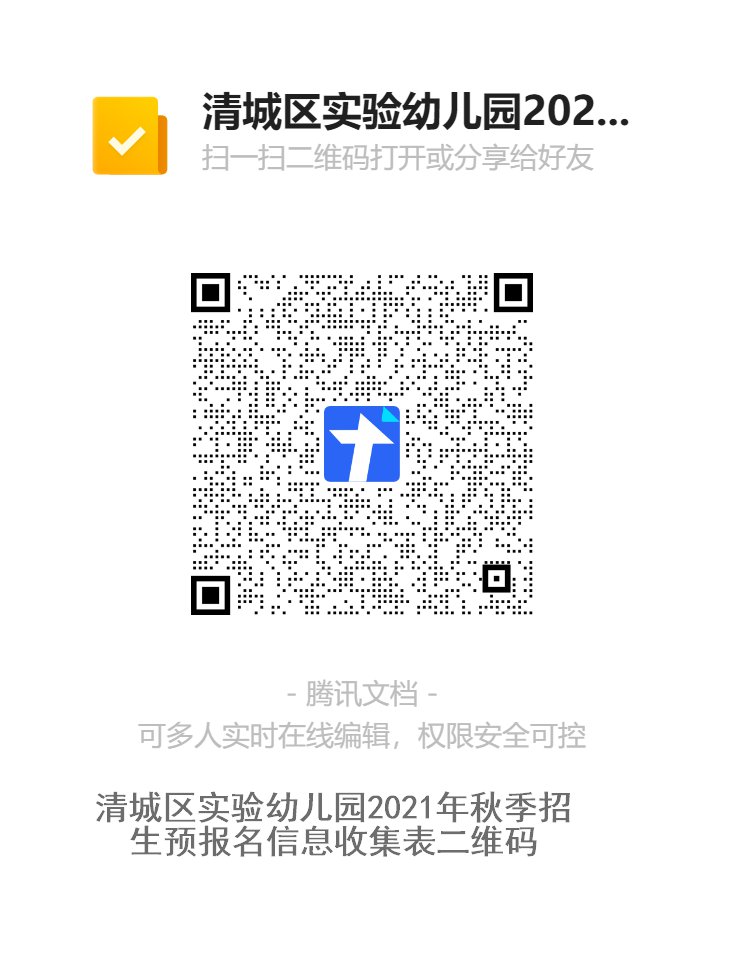 2021年8月12日起,在幼儿园门口张贴公告,并在“清远市清城区实验幼儿园”微信公众号和“清城发布”微信公众号发布信息。(请符合报名条件的家长扫描下载、打印并填写《2021年秋季学期清城区直属公办幼儿园小班新生报名表》)