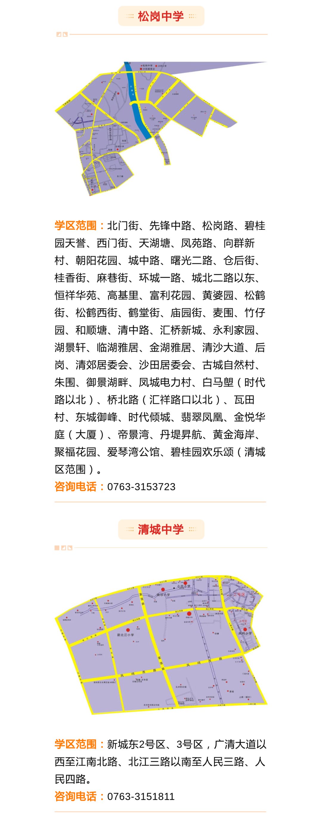 2021年清城区区直属公办学校七年级新生报名点及学区范围