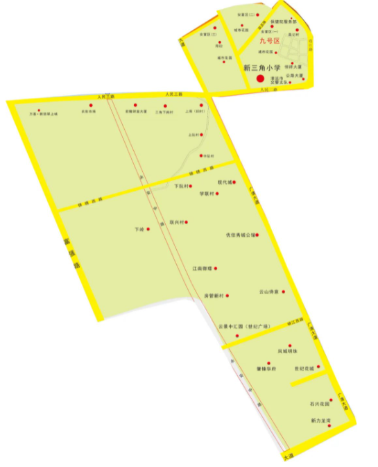 富强路以西至江南北路、北江三路以南至人民四路片区(含七色城邦、胜利茶文化博览·岭南汇、恒隆·文华里、新亚·君悦台、创富御水湾、新亚·柏悦湾、锋源公馆、凯洋公馆、万豪·博雅苑、福泰·星海岸、康怡·江畔华府、雅居乐·清远雅郡、锦乐学府里、万豪·博阅花园、大湾村、大冲村、邹围村、地质队、南埗下南村、大沙村);