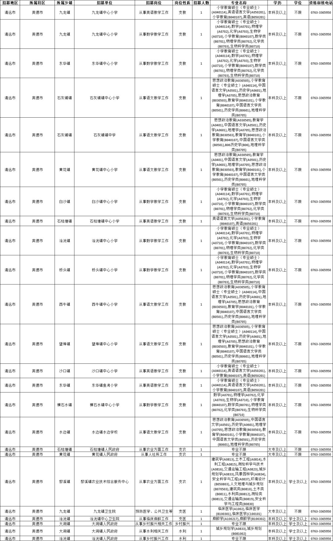 广东省2021年“三支一扶”招募对象: