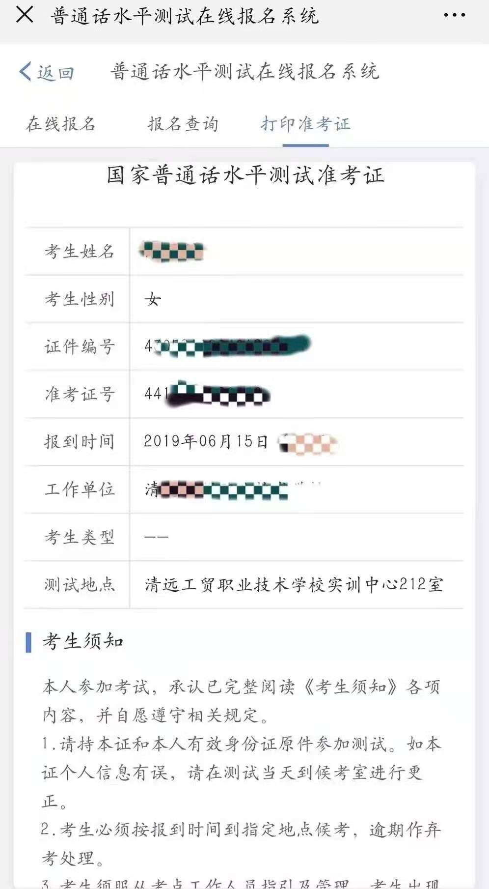 普通话准考证下载流程