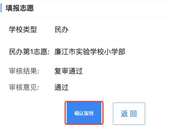 民办学校实行先预录取,预录取结果发布后,学生或家长收到预录取短信通知,可登录招生系统,点击“民办报名”按钮,弹出“我要报名”对话框;点击学生名字进入报名详情页面操作“确认报到”,点击“确认报到”即确认报到该民办学校: