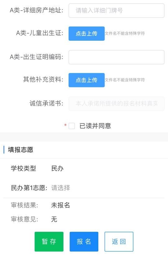 1、点击“民办报名”按钮,弹出“我要报名”对话框: