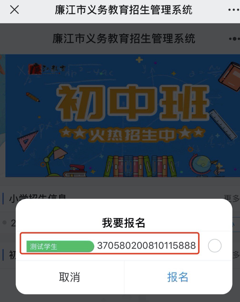 廉江市义务教育招生管理系统手机报名指南