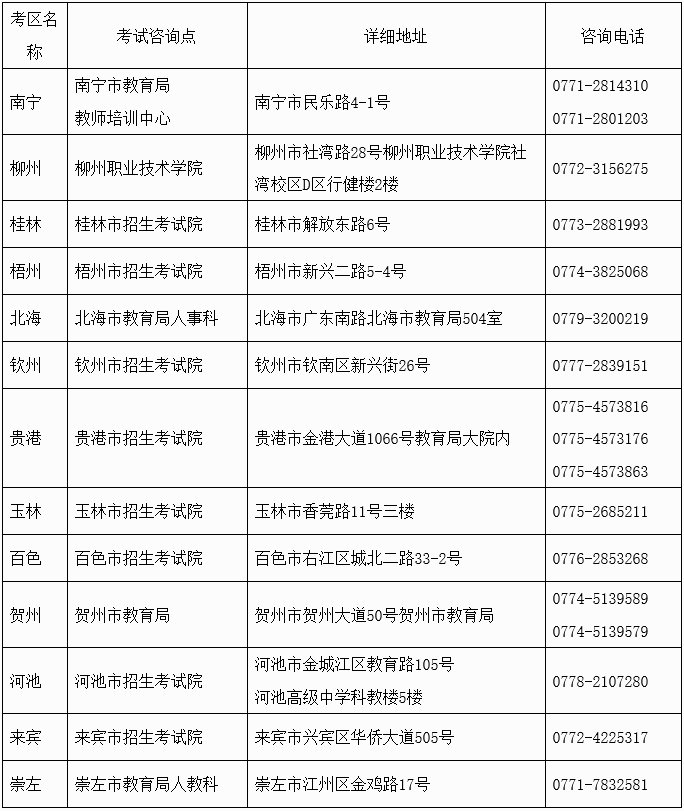 (二)有关此次考试的信息会在“广西招生考试院”网站、微信公众号(名称:柳园清风)发布,请考生持续关注。其他未尽事宜,可联系各考试咨询点咨询。